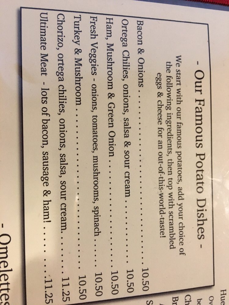 We start with our famous potatoes, add your choice of the following ingredients, then top with scrambled eggs and cheese for an out-of-this-world-taste!